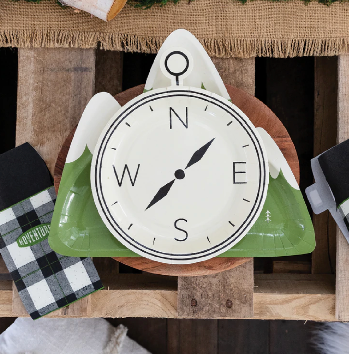 Make sure your guests know how to find adventure by including these whimsical compass plates your explorer themed birthday party. Die cut to look like a compass, these shaped plates will insure that your guests will find their way to the cake!