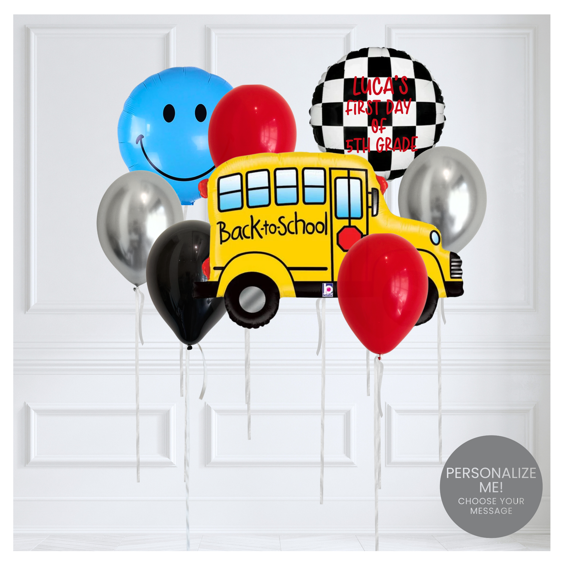 Back to School Bus Balloon Bouquet - Blue