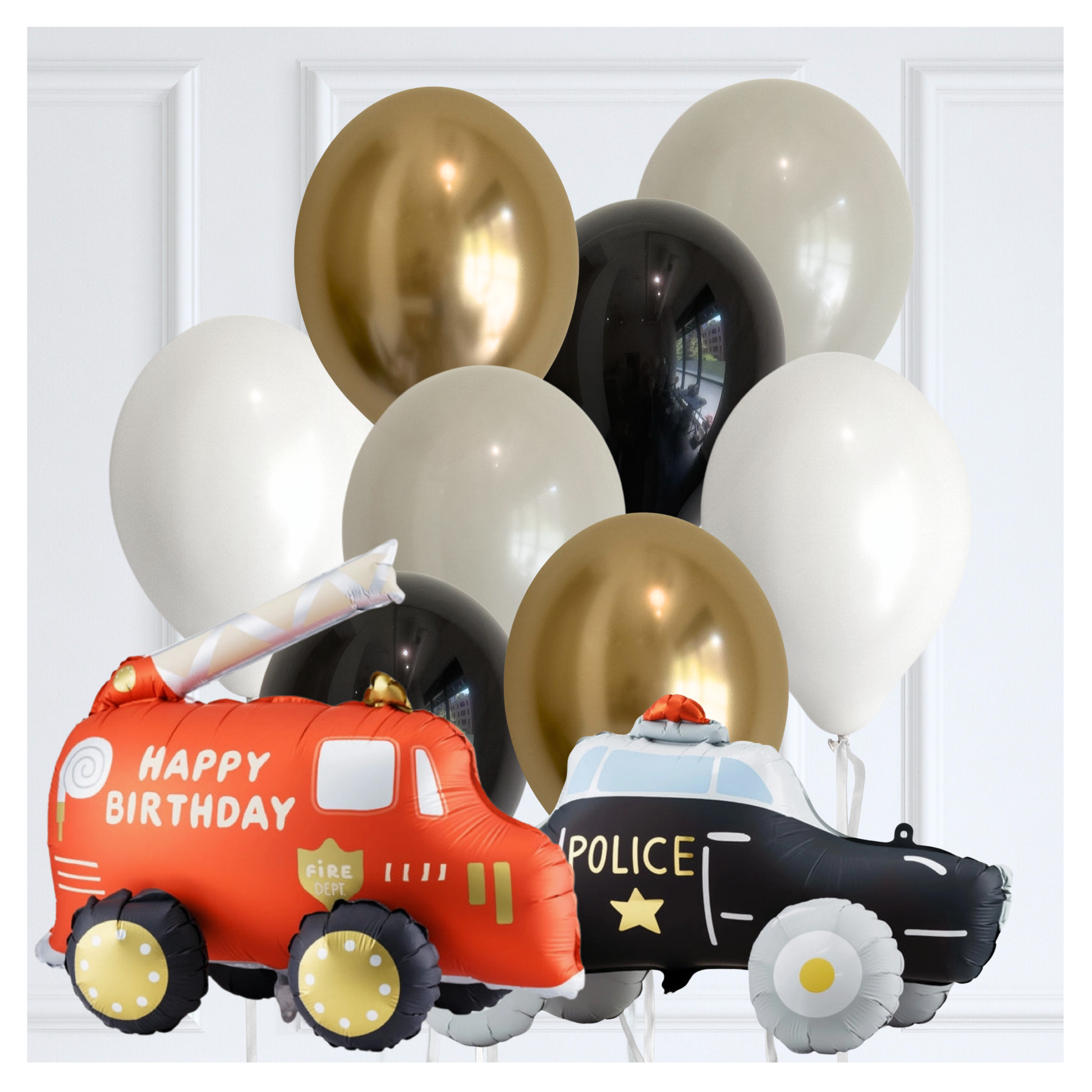 Balloons: Metallic Gold / Stone / White / Black / Fire Truck / Fire Truck / Police Car
