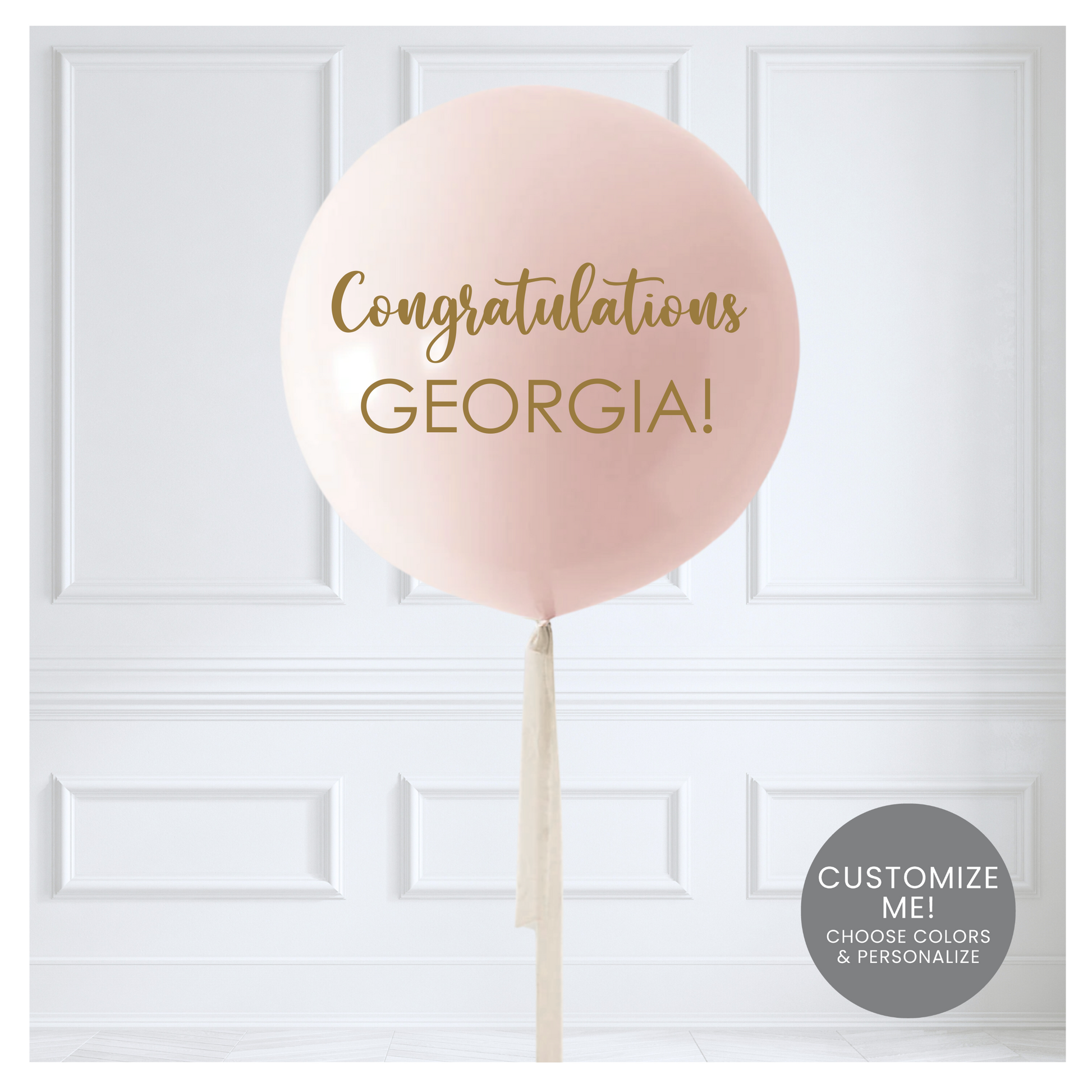 Create your own CUSTOM Jumbo balloon! Our Jumbo Collection offers a fun addition to any party. Place near a sweets table or photo backdrop for maximum wow factor. Designed with high-quality balloons and finished with a gorgeous satin ribbon tie, it effortlessly adds a festive touch to any occasion without compromise. Order today for a truly unforgettable celebration!