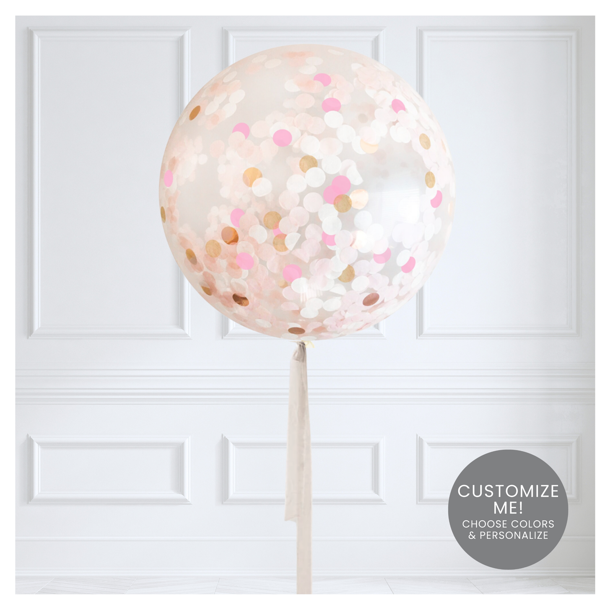 Our Jumbo Confetti Collection offers a fun addition to any party. Place near a sweets table or photo backdrop for maximum wow factor. Designed with high-quality balloons, filled with your favorite confetti and finished with a gorgeous satin ribbon tie, it effortlessly adds a festive touch to any occasion without compromise. Order today for a truly unforgettable celebration!