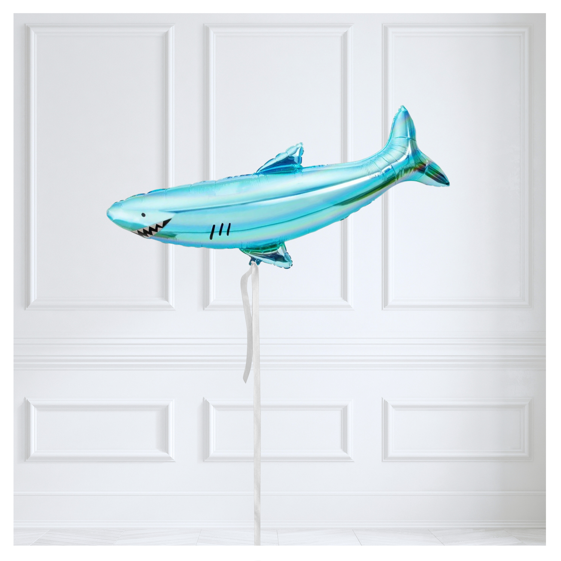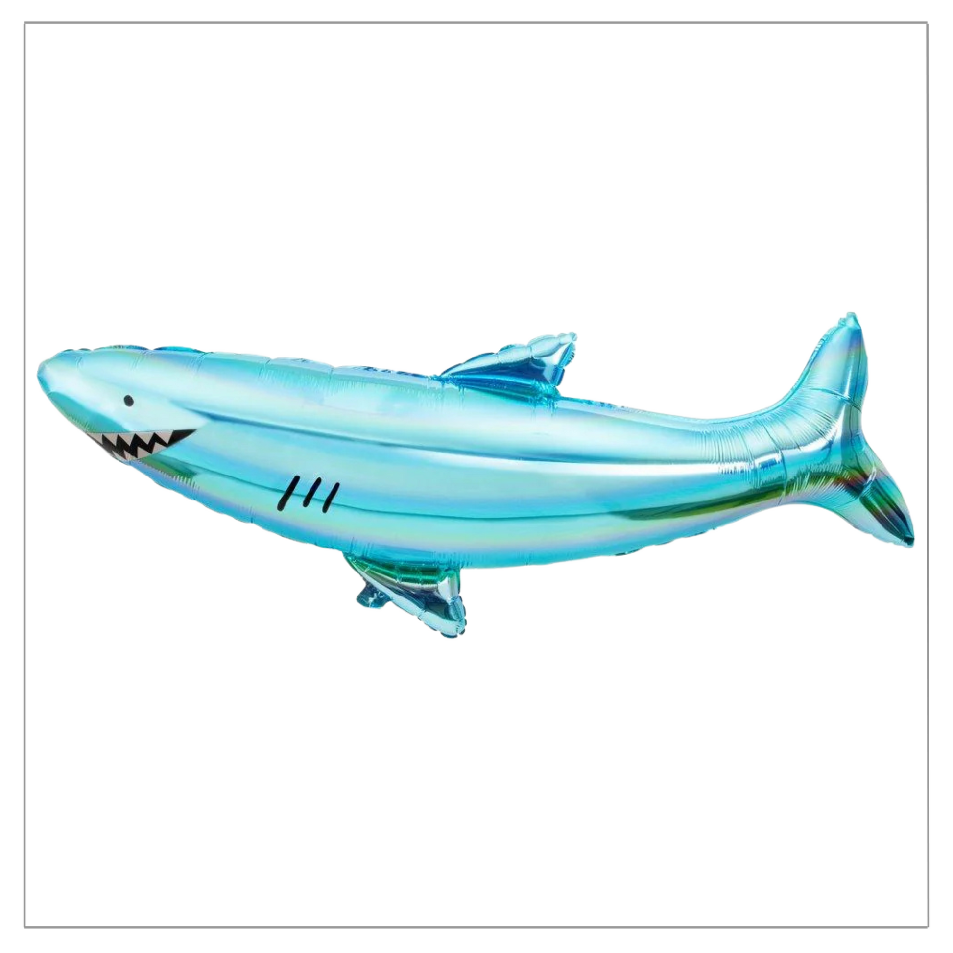 This shiny shark balloon will thrill your guests with his toothy grin. He makes the perfect decoration for an under-the-sea or pirate party.