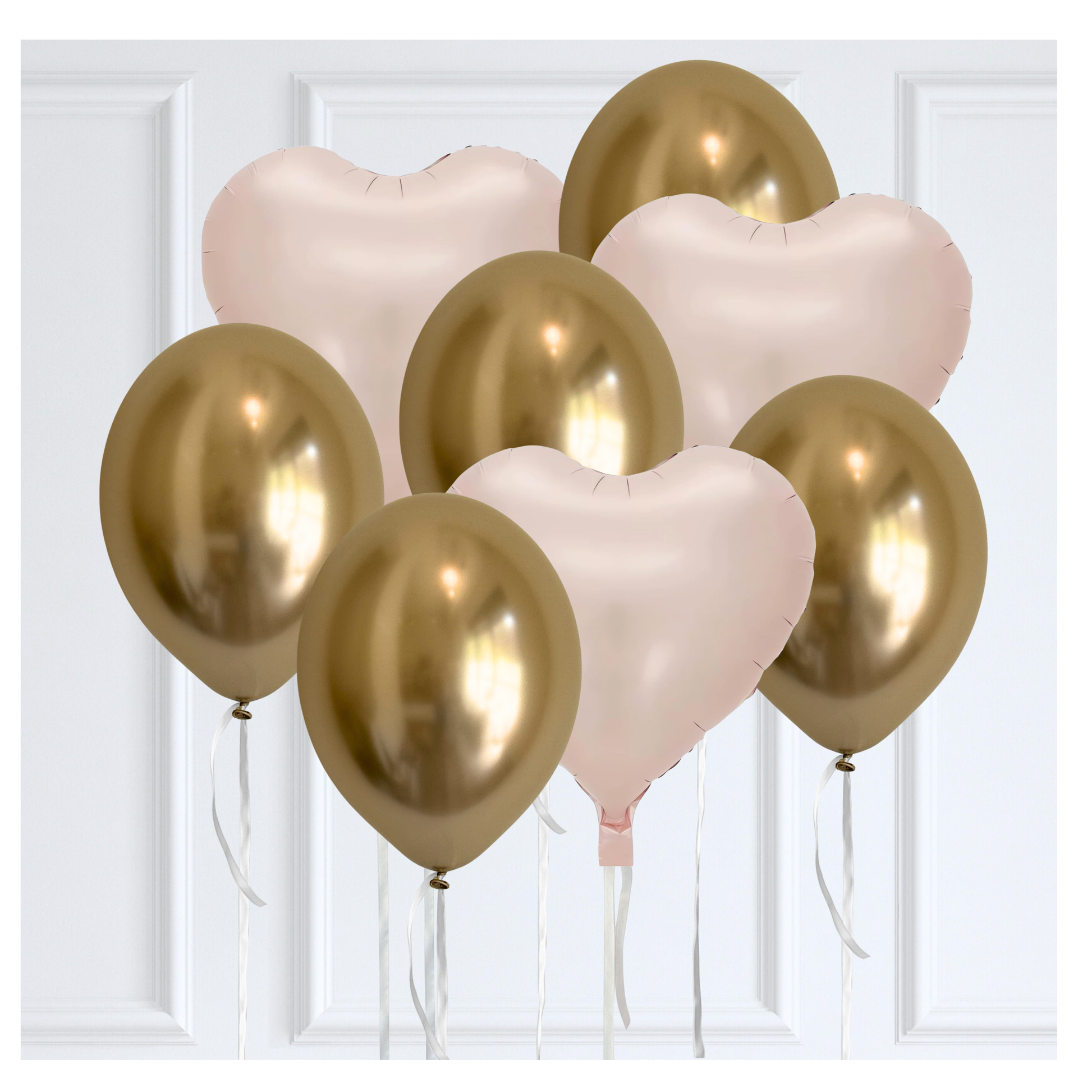 Details: Bouquet: 5 11” latex balloons + 3 16" foil heart balloons