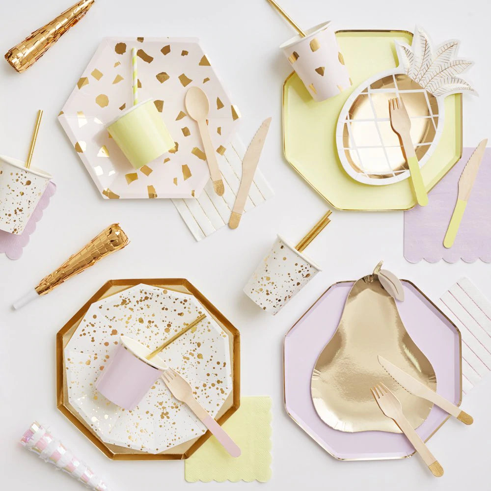 Impress your guests with these fruity plates, cut into the shape of a perfect pineapple and elegantly embellished with sumptuous gold foil.