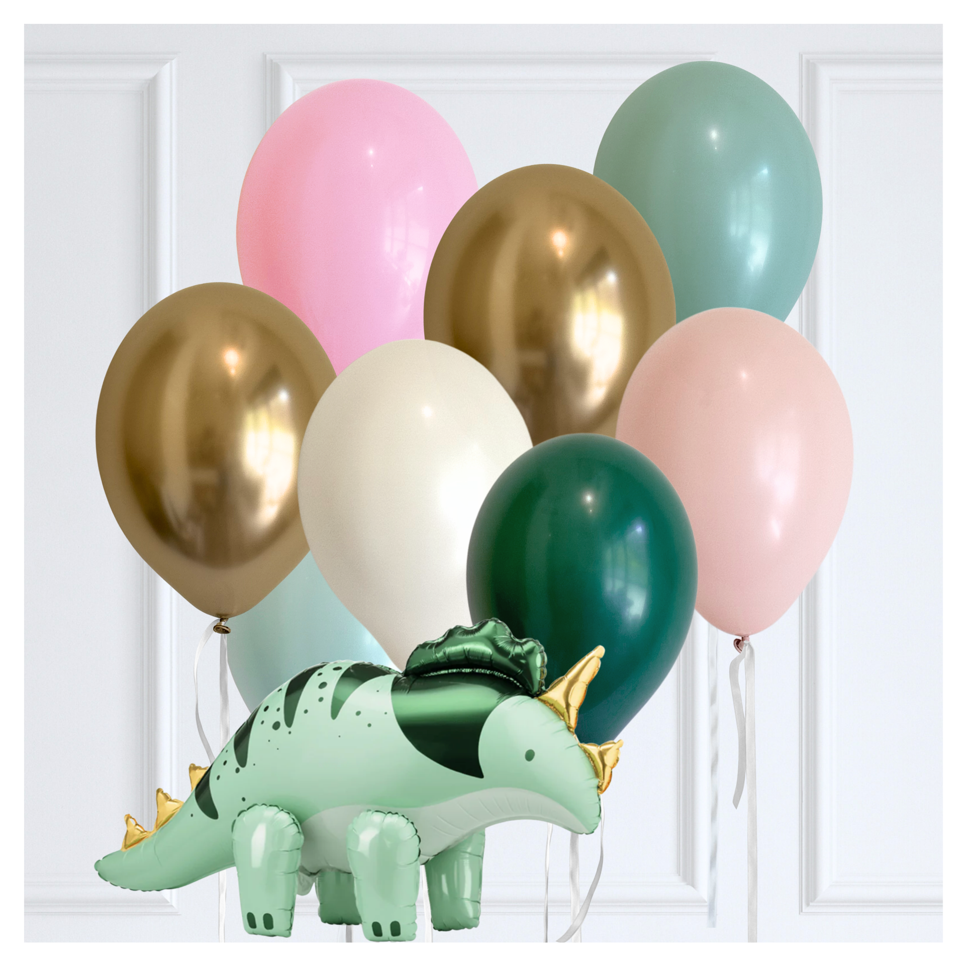 Balloons: Baby Pink / Willow / Lace / Evergreen / Gold / Cameo / Empower Mint / Triceratops (standing and does not float)