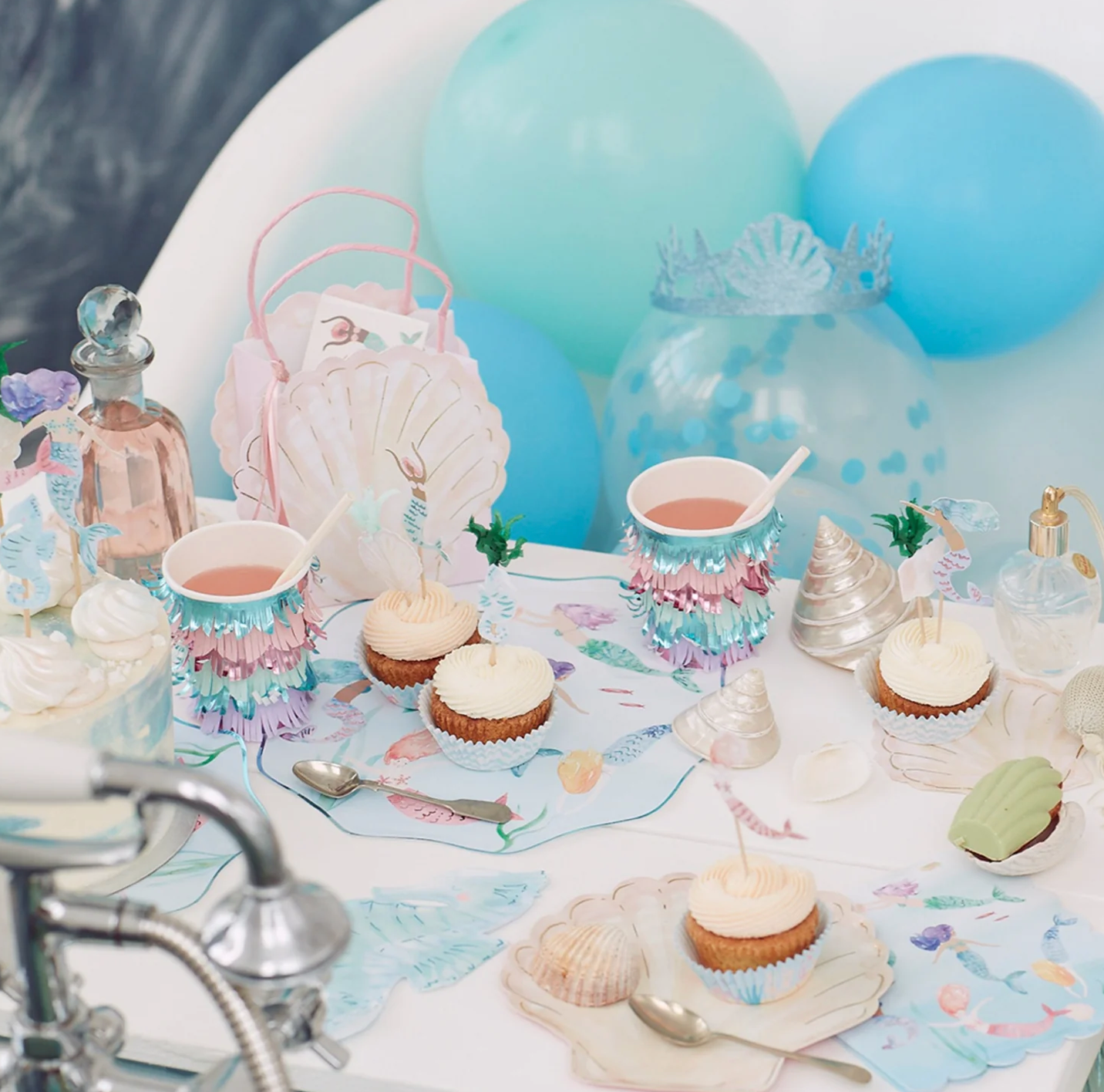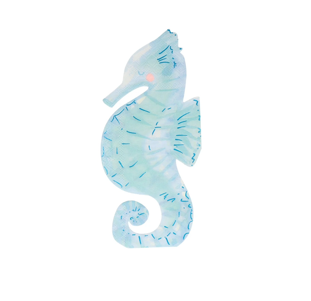 These napkins, in the shape of a beautiful seahorse, will look amazing at an under-the-sea or mermaid party. They are printed with ocean colors and brilliant shimmering blue foil detail. A really delightful touch for the party table. Set of 16.