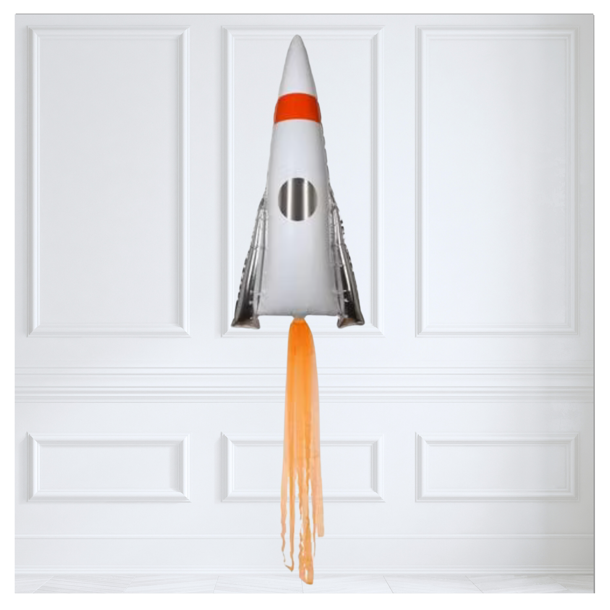 Let this terrific shiny foil rocket ship balloon be a brilliant decoration at your party. It is perfect for an outer space party! It features copper foil detail and a neon cord for easy display.