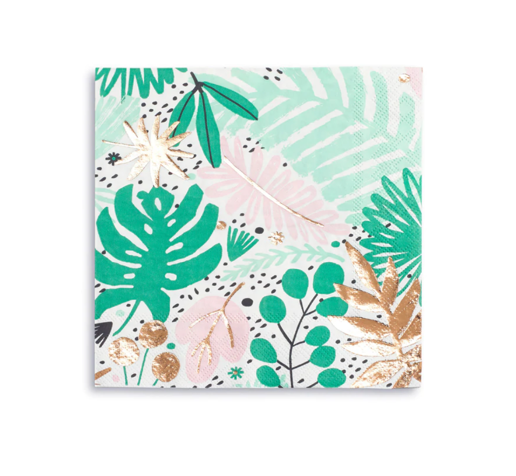Paradise found! featuring gorgeous colors and rose gold foil-pressed elements, these napkins feel like a tropical vacay. we especially love them for a flamingo party!